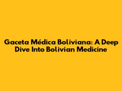 Gaceta Médica Boliviana: A Deep Dive Into Bolivian Medicine