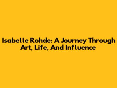 Isabelle Rohde: A Journey Through Art, Life, And Influence