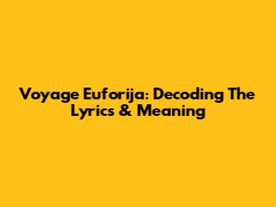 Voyage Euforija: Decoding The Lyrics & Meaning