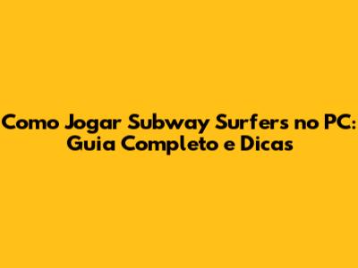 Subway Surfers, o frenético jogo de corrida infinita, conquistou milhões de jogadores em todo o mundo. Se você é fã do game e quer aproveitar toda a diversão no seu computador, este guia completo é para você. Vamos explorar as melhores maneiras de como jogar Subway Surfers no PC, com dicas, truques e tudo o que você precisa saber para se tornar um mestre corredor.