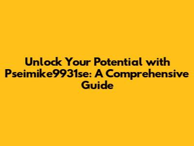 Unlock Your Potential with Pseimike9931se: A Comprehensive Guide