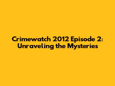 Hey everyone, let's dive into the gripping world of Crimewatch! Specifically, we're taking a look at episode 2 from 2012. This episode, like all the best Crimewatch installments, is a rollercoaster of suspense, mystery, and the relentless pursuit of justice. If you're a true crime junkie like me, get ready because this is gonna be good! We will be revisiting the cases that had us all on the edge of our seats back in 2012. Each case presented in Crimewatch is a carefully crafted narrative, a puzzle with multiple pieces scattered across the crime scene, witness testimonies, and forensic evidence. The goal is to piece together the events, understand the motives, and ultimately, bring the perpetrators to justice. This episode is more than just a recounting of events; it's a window into the human condition, a reminder of the darkness that can exist, and the unwavering dedication of those who fight against it. So, grab your snacks, get comfortable, and let's unravel the mysteries of Crimewatch 2012 Episode 2.