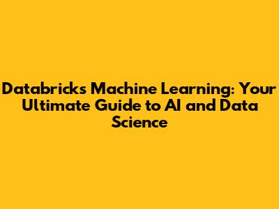 Databricks Machine Learning: A Comprehensive Guide