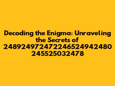Hey guys, let's dive headfirst into this mystery! We're gonna crack the code on 248924972472246524942480 245525032478. It seems like a bunch of random numbers, right? Well, hold on to your hats, because we're about to embark on a journey of discovery. Prepare to be amazed! The goal here is to figure out what this number sequence actually means. Think of it like a puzzle, a cryptic message waiting to be deciphered. We'll be using all sorts of techniques, from pattern recognition to good old-fashioned detective work. So, buckle up and get ready for a wild ride. The journey to understand the meaning of 248924972472246524942480 245525032478 begins now!