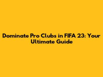 Dominate Pro Clubs In FIFA 23: Your Ultimate Guide