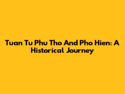 Tuan Tu Phu Tho And Pho Hien: A Historical Journey