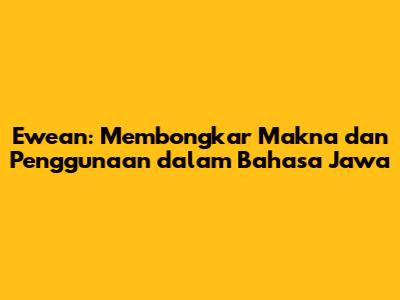 Ewean adalah kata yang sarat makna dalam bahasa Jawa, yang mencerminkan nilai-nilai budaya dan norma-norma sosial yang berlaku. Memahami arti, penggunaan, dan dampak ewean penting untuk memahami kompleksitas hubungan manusia dalam budaya Jawa. Dengan memahami ewean, kita dapat lebih menghargai pentingnya kesetiaan, kejujuran, dan komitmen dalam hubungan. Mari kita terus belajar dan menggali kekayaan bahasa dan budaya Jawa untuk memperkaya wawasan kita.