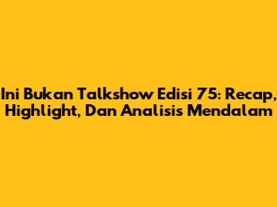 Ini Bukan Talkshow Edisi 75: Recap, Highlight, Dan Analisis Mendalam