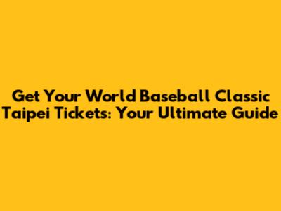 Hey baseball fanatics! Are you guys ready for some serious action? The World Baseball Classic is gearing up, and if you're anything like me, you're already dreaming of being in the stands, soaking up the atmosphere, and witnessing some incredible plays. If you're eyeing the Taipei games, then you're in the right place! This guide is your one-stop shop for everything you need to know about snagging those coveted World Baseball Classic Taipei tickets. We'll cover where to buy them, what to expect, and some tips and tricks to make sure you don't miss out on the baseball event of the year. Let's dive in and get you prepped to experience the electrifying energy of the World Baseball Classic in Taipei!