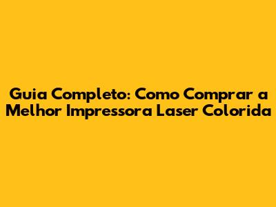 Guia Completo: Como Comprar A Melhor Impressora Laser Colorida