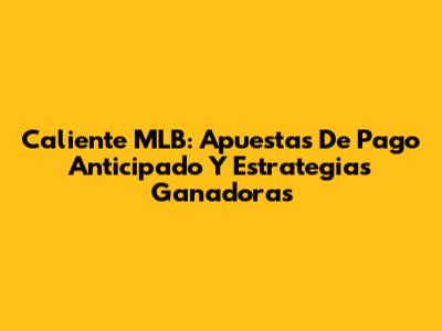 Caliente MLB: Apuestas De Pago Anticipado Y Estrategias Ganadoras