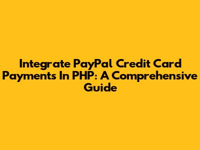Integrate PayPal Credit Card Payments In PHP: A Comprehensive Guide