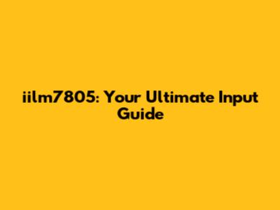 Iilm7805: Your Ultimate Input Guide