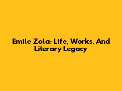 Emile Zola: Life, Works, And Literary Legacy
