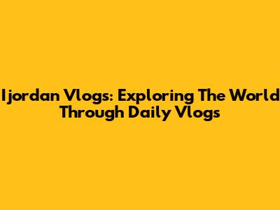 Ijordan Vlogs: Exploring The World Through Daily Vlogs