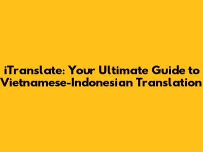 Hey guys! Ever found yourself staring at a Vietnamese phrase, completely clueless, and wishing you had a magic translator on hand? Or maybe you're planning a trip to Indonesia and want to chat with the locals in their language? Well, you're in luck! This guide is all about iTranslate, your new best friend for navigating the world of Vietnamese-Indonesian translation. We'll dive deep into how this awesome tool can help you break down language barriers, whether you're a seasoned traveler, a curious language learner, or just someone who wants to understand a song lyric. Seriously, iTranslate is a game-changer, and we're here to show you how to make the most of it.