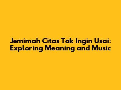 Hey guys, let's dive into something special today! We're talking about Jemimah Cita and her hit song, 'Tak Ingin Usai'. This song isn't just a catchy tune; it's a journey through emotions, beautifully crafted and delivered. In this article, we'll break down the song's meaning, explore the lyrics, and give you a peek into what makes this track so captivating. We will also delve into Jemimah Cita's impact on Indonesian music and the song's place in the pop music landscape.