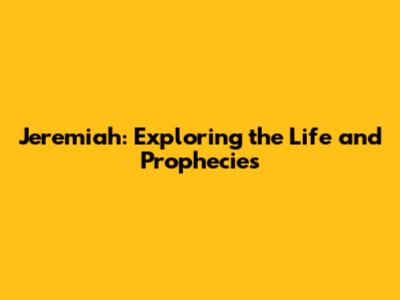 Jeremiah: Exploring The Life And Prophecies