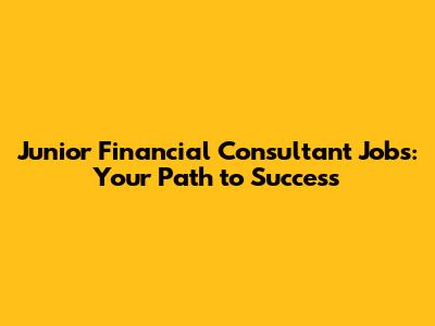 Junior Financial Consultant Jobs: Your Path To Success