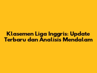 Dalam artikel ini, kita akan membahas secara komprehensif mengenai klasemen Liga Inggris terbaru. Kita akan melihat posisi masing-masing tim, perolehan poin, selisih gol, dan statistik penting lainnya. Selain itu, kita juga akan menganalisis performa beberapa tim unggulan, seperti Manchester City, Liverpool, Arsenal, Manchester United, Chelsea, dan Tottenham Hotspur. Kita juga akan membahas potensi kejutan dari tim-tim kuda hitam yang mungkin bisa mengganggu dominasi tim-tim besar.