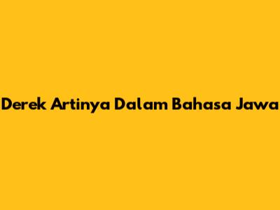 Derek Artinya Dalam Bahasa Jawa