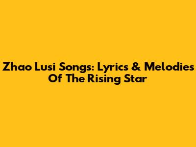 Zhao Lusi Songs: Lyrics & Melodies Of The Rising Star