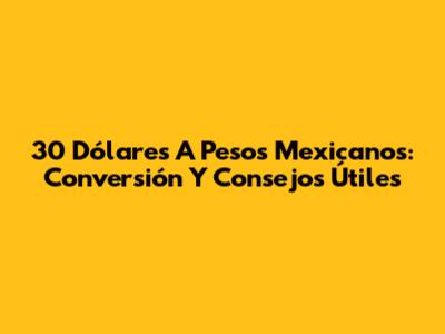 30 Dólares A Pesos Mexicanos: Conversión Y Consejos Útiles