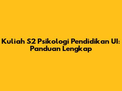 Kuliah S2 Psikologi Pendidikan UI: Panduan Lengkap