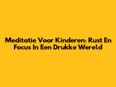 Meditatie Voor Kinderen: Rust En Focus In Een Drukke Wereld