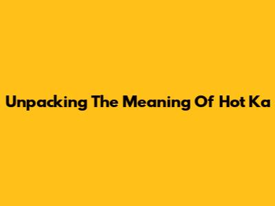 Unpacking The Meaning Of "Hot Ka"