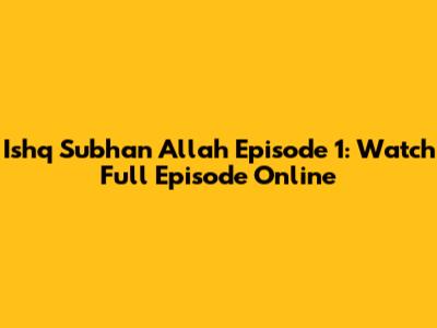 Ishq Subhan Allah Episode 1: Watch Full Episode Online