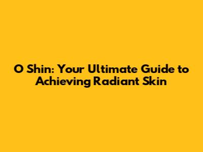 O Shin: Your Guide To Radiant Skin