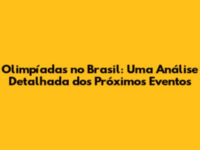 Olimpíadas No Brasil: Expectativas E Preparativos Para Os Próximos Jogos