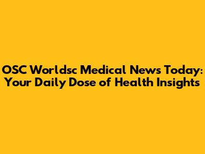 OSC Worldsc Medical News Today: Latest Updates