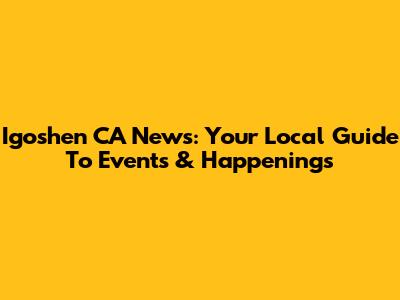 Igoshen CA News: Your Local Guide To Events & Happenings