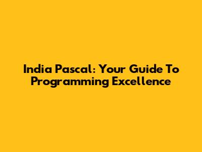 India Pascal: Your Guide To Programming Excellence