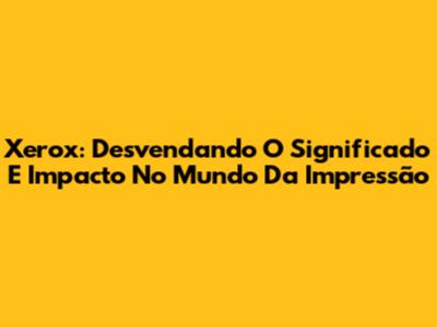 Xerox: Desvendando O Significado E Impacto No Mundo Da Impressão
