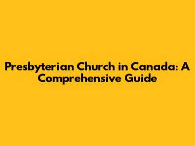 Presbyterian Church In Canada: A Comprehensive Guide