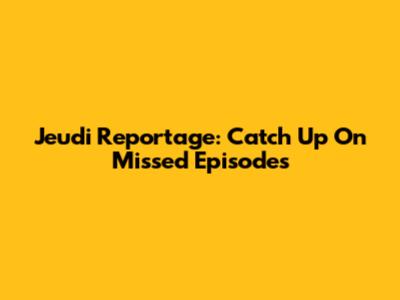 Jeudi Reportage: Catch Up On Missed Episodes
