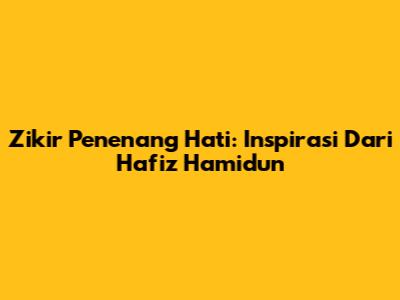 Zikir Penenang Hati: Inspirasi Dari Hafiz Hamidun
