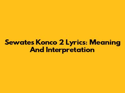 Sewates Konco 2 Lyrics: Meaning And Interpretation