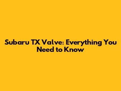 What Exactly is a Subaru TX Valve?
