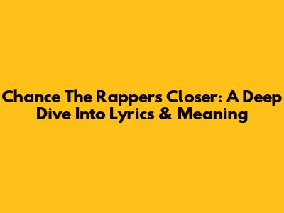 Chance The Rapper's 'Closer': A Deep Dive Into Lyrics & Meaning