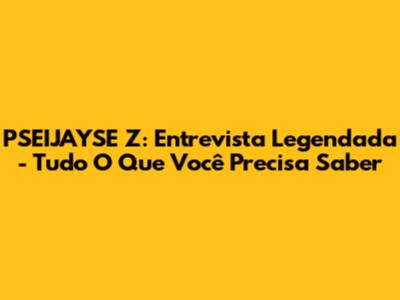 PSEIJAYSE Z: Entrevista Legendada - Tudo O Que Você Precisa Saber