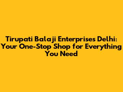 Hey guys! Ever found yourselves in a bit of a pickle, needing something specific but not knowing where to turn in the bustling city of Delhi? Well, let me introduce you to Tirupati Balaji Enterprises Delhi – your potential lifesaver! This place isn't just another store; it's a hub for various services and products, making your life easier in ways you might not have imagined. We're talking about a place that's got its fingers in many pies, making it a go-to spot for a whole range of needs. Let's dive in and see what makes Tirupati Balaji Enterprises Delhi so special and why it should be on your radar.