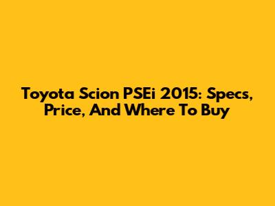 Toyota Scion PSEi 2015: Specs, Price, And Where To Buy