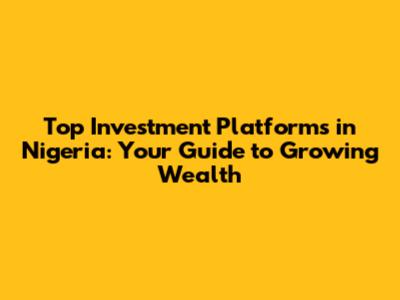Top Investment Platforms in Nigeria to Consider