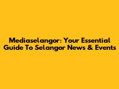 Mediaselangor: Your Essential Guide To Selangor News & Events