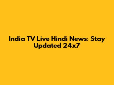India TV Live Hindi News: Stay Updated 24x7
